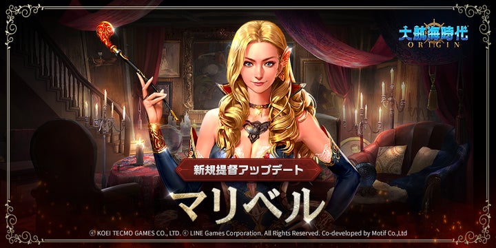 LINE Games共同開発の『大航海時代 Origin』には、新提督「マリベル」と航海士「七海」が登場。