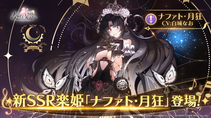 ピックアップガチャでは新SSR楽姫「ナファト・月狂」が登場し、限界突破素材も販売されます。