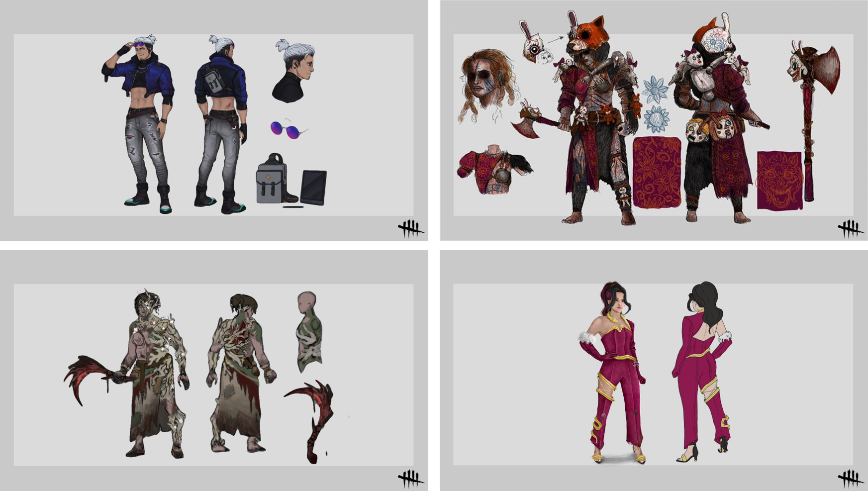 次に、「霧のアーティストコレクション」ではカナダ、米国、ポーランド、スペインからファンアート等を基に才能溢れる4名のクリエイターをDead by Daylightコミュニティーからお迎えし、キラー2名とサバイバー2名の衣装をデザインしていただきました。