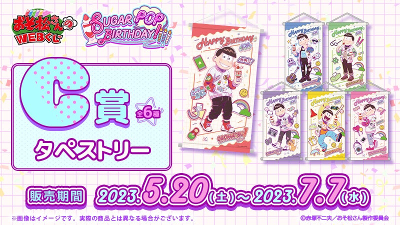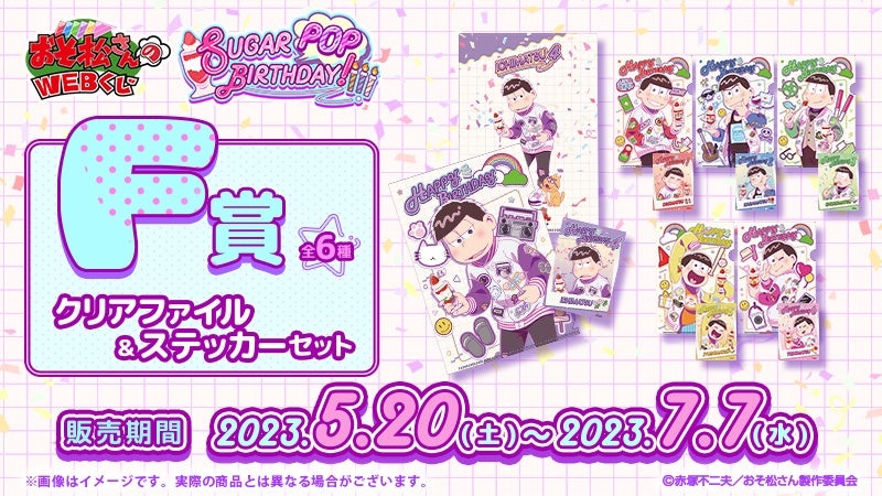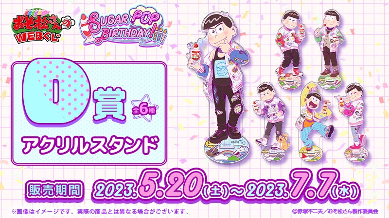 【店頭&オンラインで販売開始】6つ子誕生日記念!!描き下ろしイラストを使用した限定グッズが当たる!「おそ松さんのWEBくじ第18弾『SUGAR POP BIRTHDAY!』」