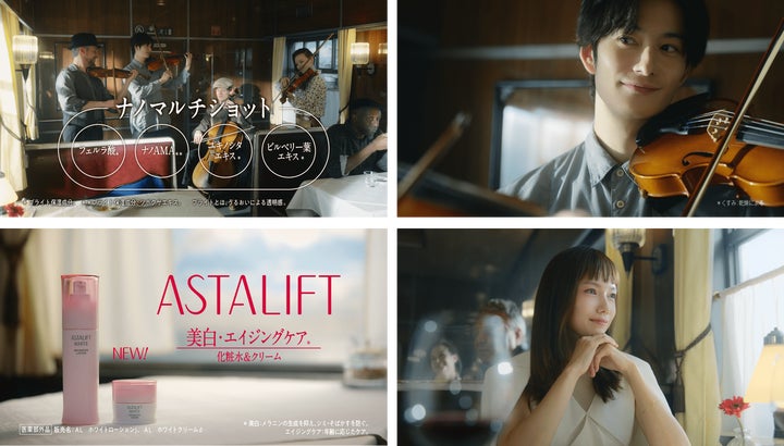 物語では、列車で偶然出会った2人が、肌のくすみをケアするアスタリフトの新製品を紹介します。