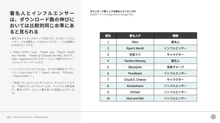 今後もIPを活用したゲーム開発やコラボレーションが注目される中、Sensor Towerはデータや分析環境を提供し、モバイル市場のトレンド把握に貢献しています。