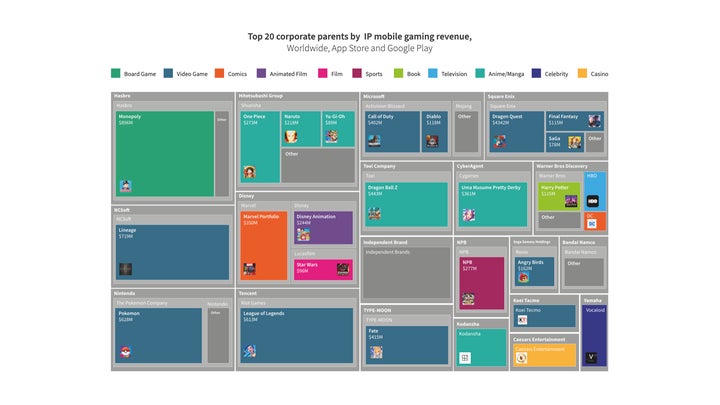IP親会社の収益トップ20にはHasbroやNCSOFTがランクインしており、Robloxや『勝利の女神:NIKKE』などの成功事例も存在します。
