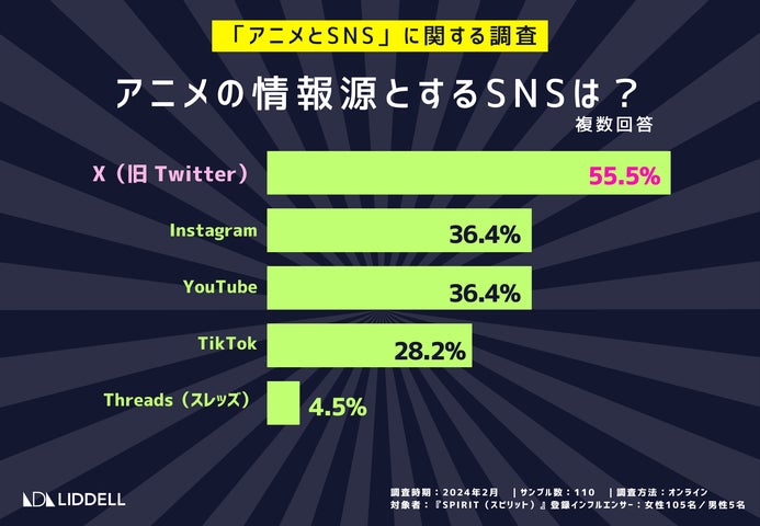 アニメの情報源として最も一般的なのは「X」(旧Twitter)ですが、「Instagram」と「YouTube」も人気があります。