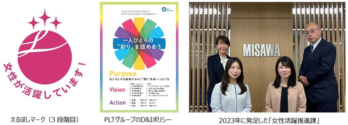 - 女性活躍推進法、女性活躍推進プロジェクト、男性育休100%宣言、D&Iポリシー、ワークライフハーモニー宣言