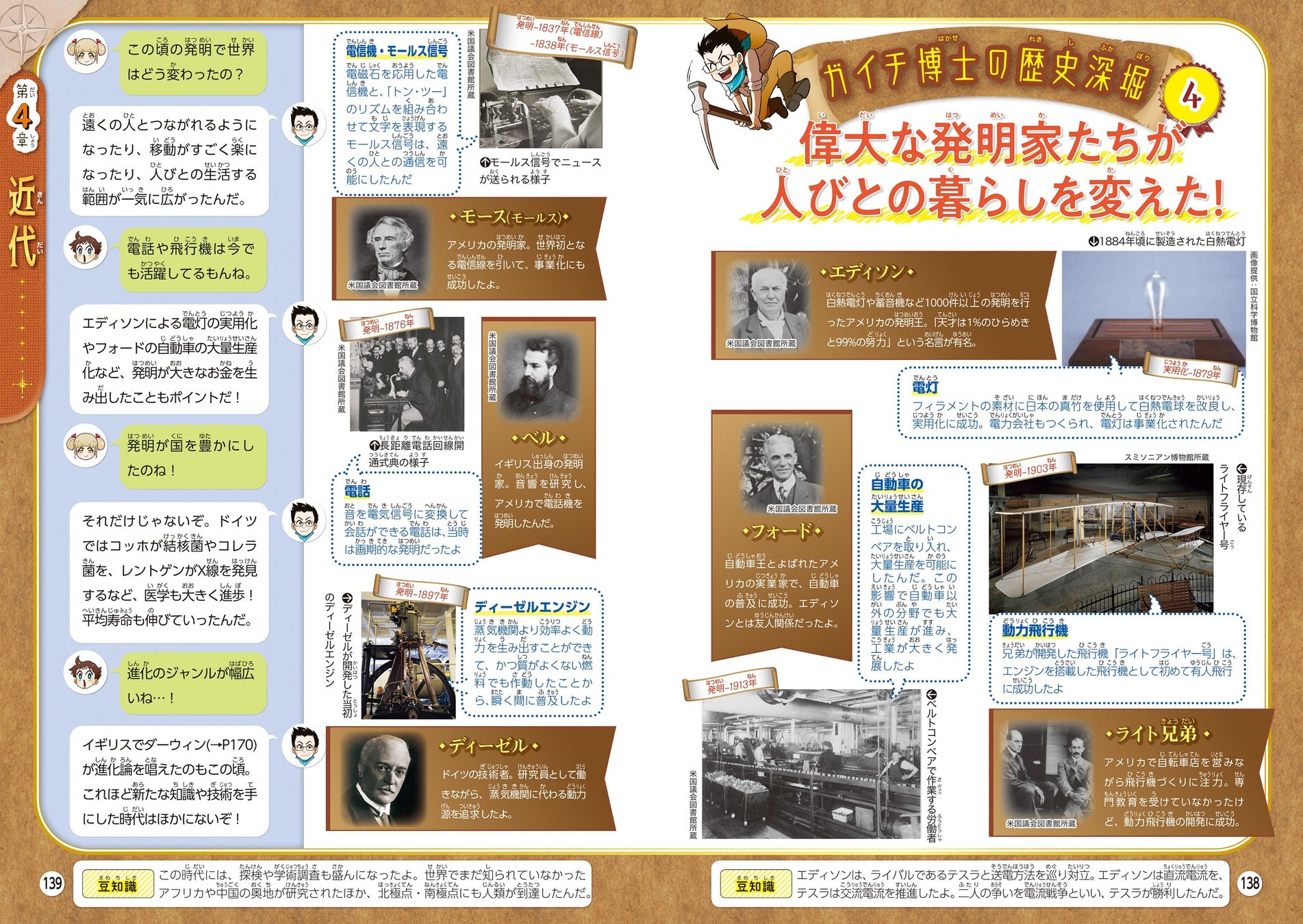 豊富な写真やイラストで古代から現代までの歴史を学ぶことができる他、算数や電気の基礎も楽しく理解できます。