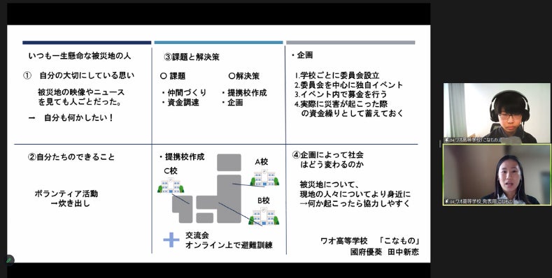 オンラインでの発表はスムーズで、生徒たちは堂々とした受け答えをしました。