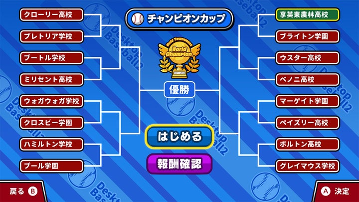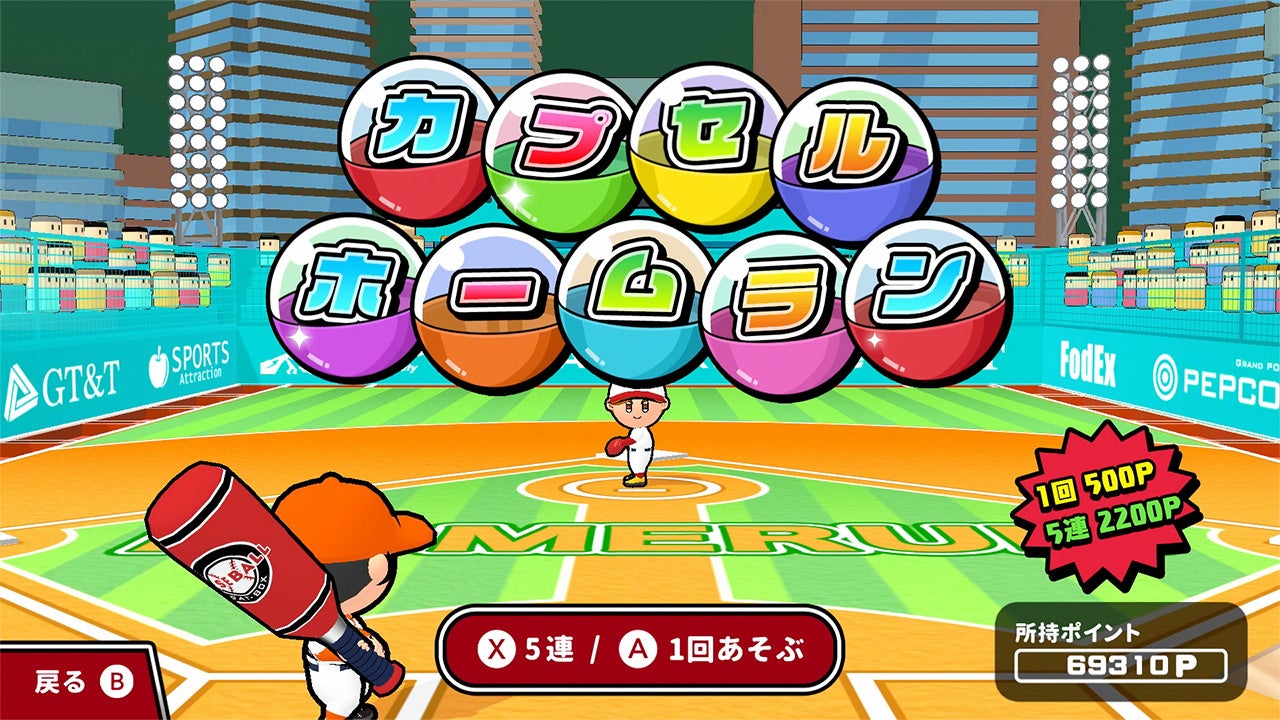 球場や選手のカスタマイズ、友達との対戦、トーナメント参加など様々な要素があります。
