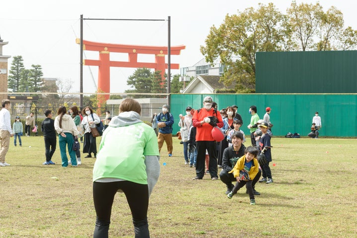 京都新聞企画事業主催のイベントでは、野球の原点であるキャッチボールを通じたコミュニケーションを楽しむことができます。