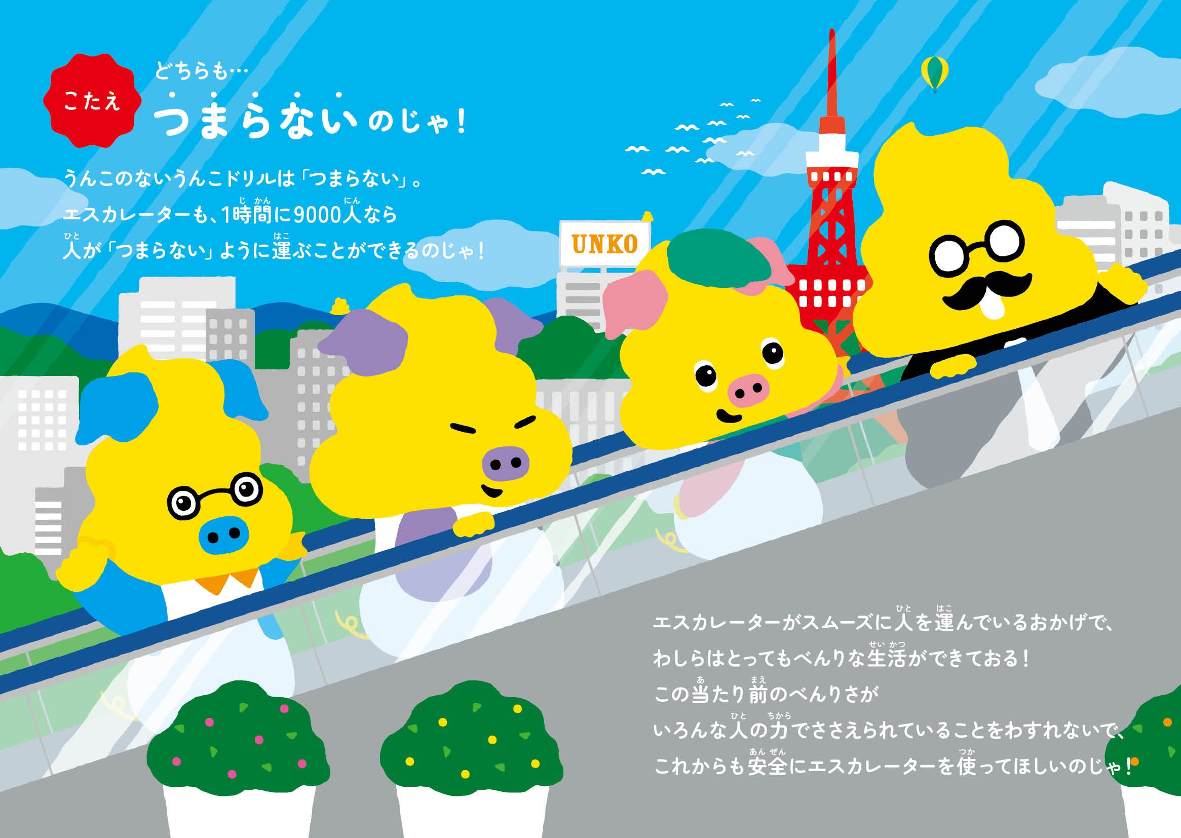 「うんこ安全ドリル(エスカレーター編)」は、そんなエスカレーターの保守点検の大切さをもっと多くの人に