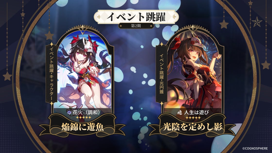「焔錦に遊魚」イベントが2月29日から開催され、限定星5キャラクター「花火」の出現率がアップされています。
