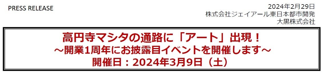 2024年3月に1周年を迎える「高円寺マシタ」が、地域の高円寺愛をつなぐミューラルアートの「完成お披露目イベント」を3月9日(土)に開催します。