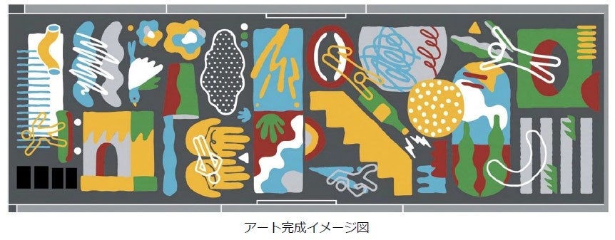 100♡KOENJIプロジェクトの一環で、日常使いする通路や床に描かれたアート作品を楽しめます。