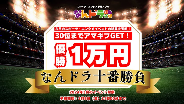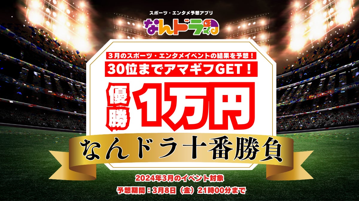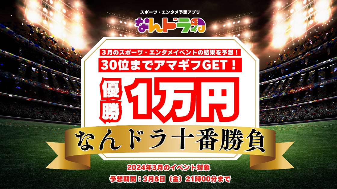 東京都渋谷区に本社を構える株式会社なんでもドラフトが運営するアプリ「なんドラ」は、毎月恒例の賞金付き予想企画『なんドラ十番勝負』を開催します。