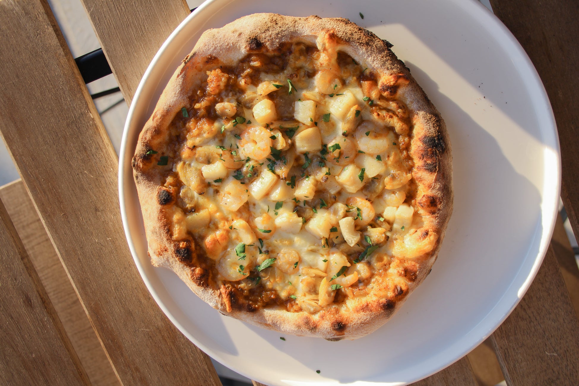 特に、SHOGUN PIZZAでは、健康的でヘルシーなピザ生地に2種類の出汁カレーをMIXした「シーフードカレーライス」風のピザが人気です。
