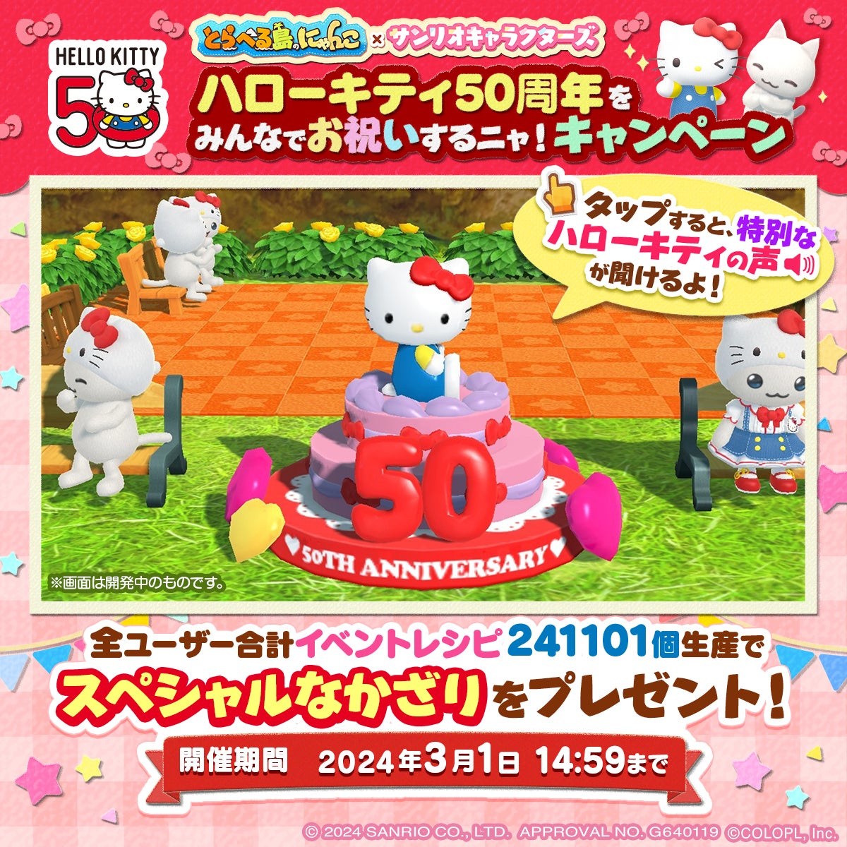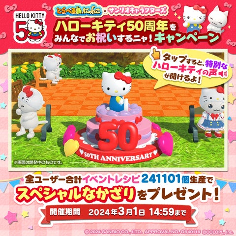 ハローキティ50周年を祝う特別なキャンペーンも実施中で、241,101個のイベントレシピを生産すると特別な「かざり」が手に入ります。