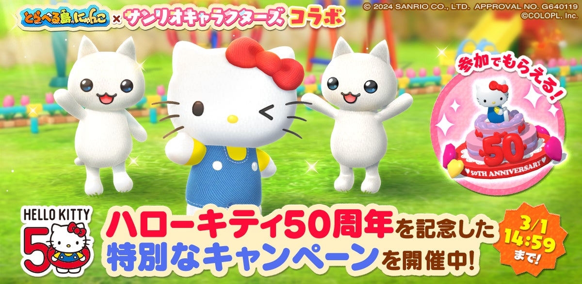 ハローキティ50周年記念!とらべる島のにゃんこキャンペーン開催中!