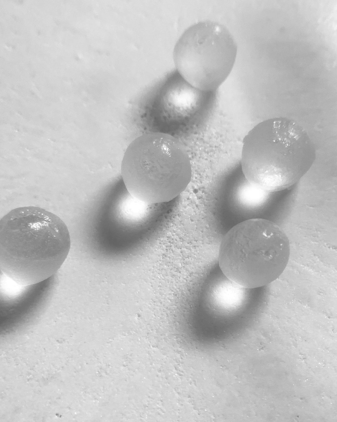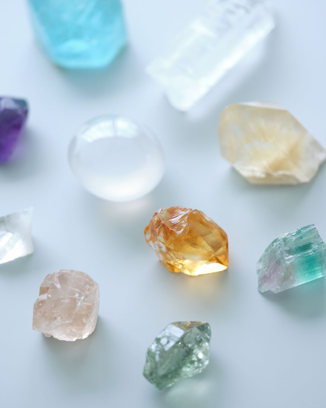 鉱石や琥珀糖を使用した唯一無二のジュエリーや茶菓が展示されています。