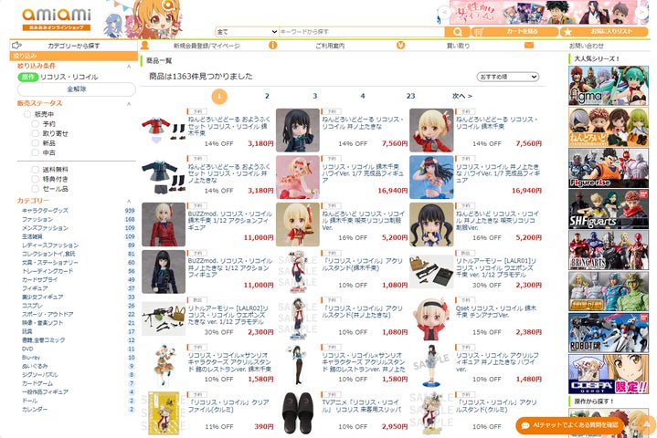 ホビー通販大手の「あみあみ」が、メーカー「クレーネル」から『リコリス・リコイル ハワイVer. 1/7スケール 完成品フィギュア』の「錦木千束」「井ノ上たきな」を販売中です。