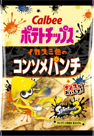 - ポテトチップス コンソメパンチ、イカスミ色のコンソメパンチ