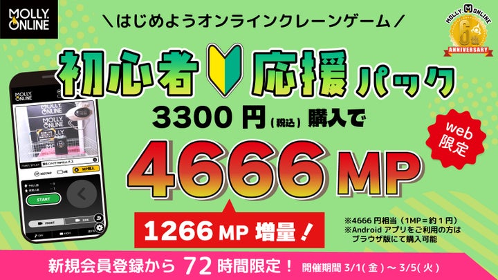 - 初心者限定パックも登場、4666MP分のポイント購入可能