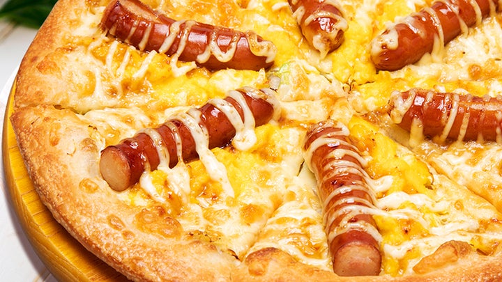 - 春のめんたいハーフ、明太子、ピッツァドッグ