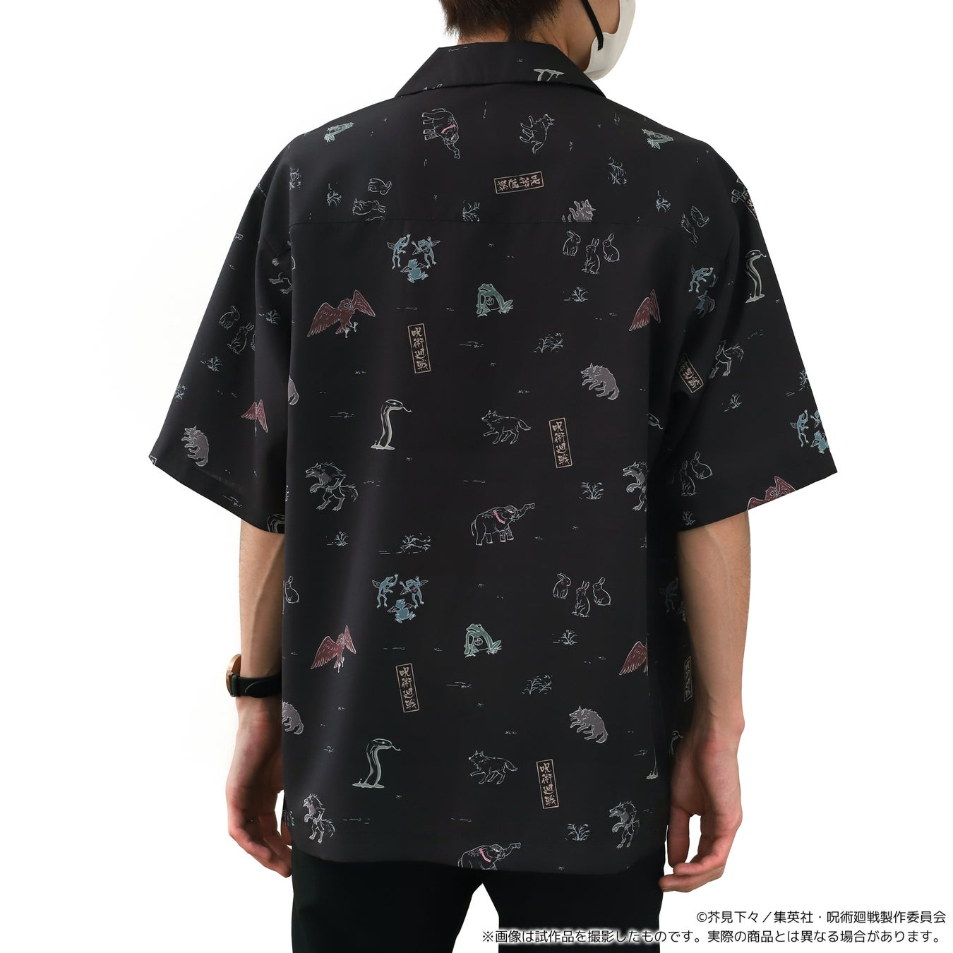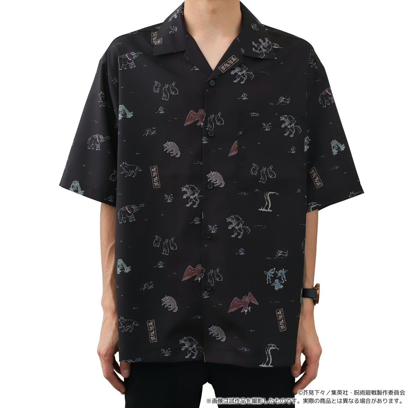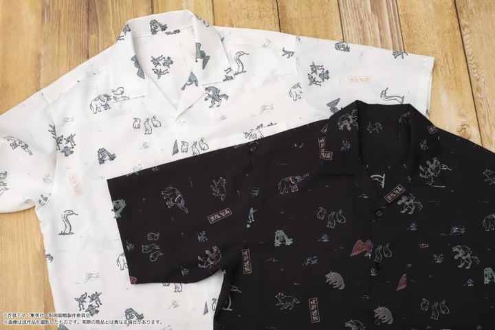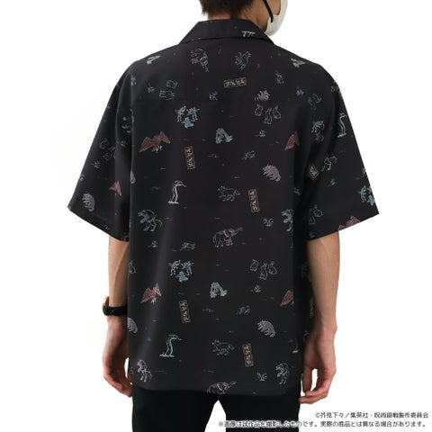 その中でも、伏黒の式神デザインのオープンカラーシャツが注目を集めており、総柄で華やかさを取り入れつつシンプルなデザインとなっています。