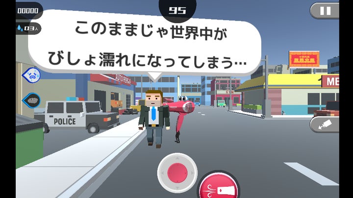 ゲームではMONSTERが濡れた髪を乾かし、ポイントを獲得します。