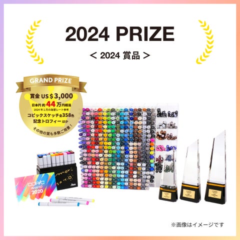 グランプリ受賞者には賞金やコピックスケッチ全色セットが贈られます。