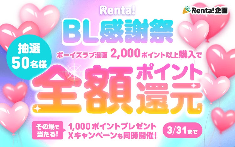 - Renta、BL感謝祭 抽選で50名様に全額ポイント還元キャンペーン