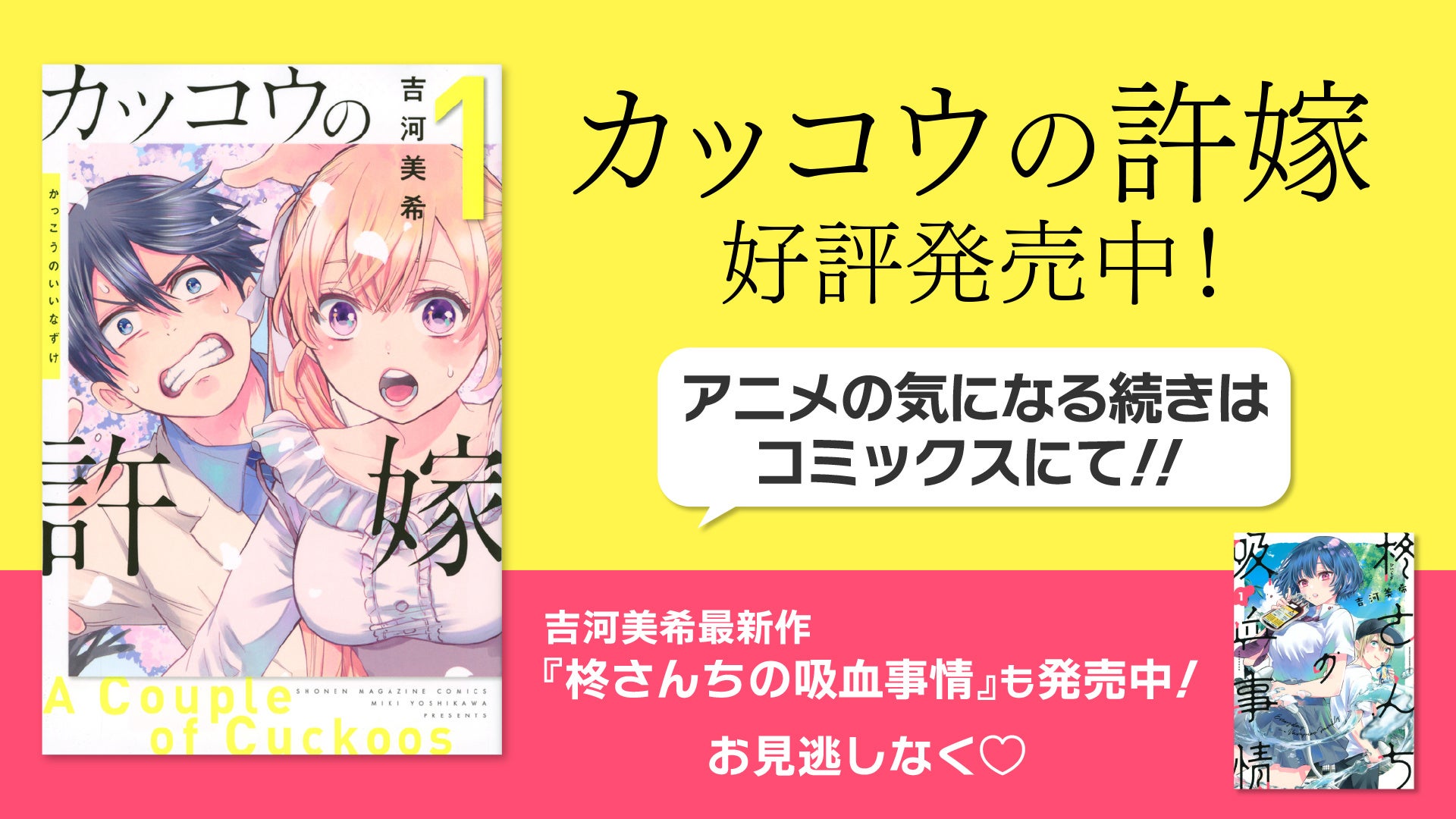 4月17日に吉河美希先生の最新作「柊さんちの吸血事情」第4巻と「カッコウの許嫁」第22巻が同時発売されます。