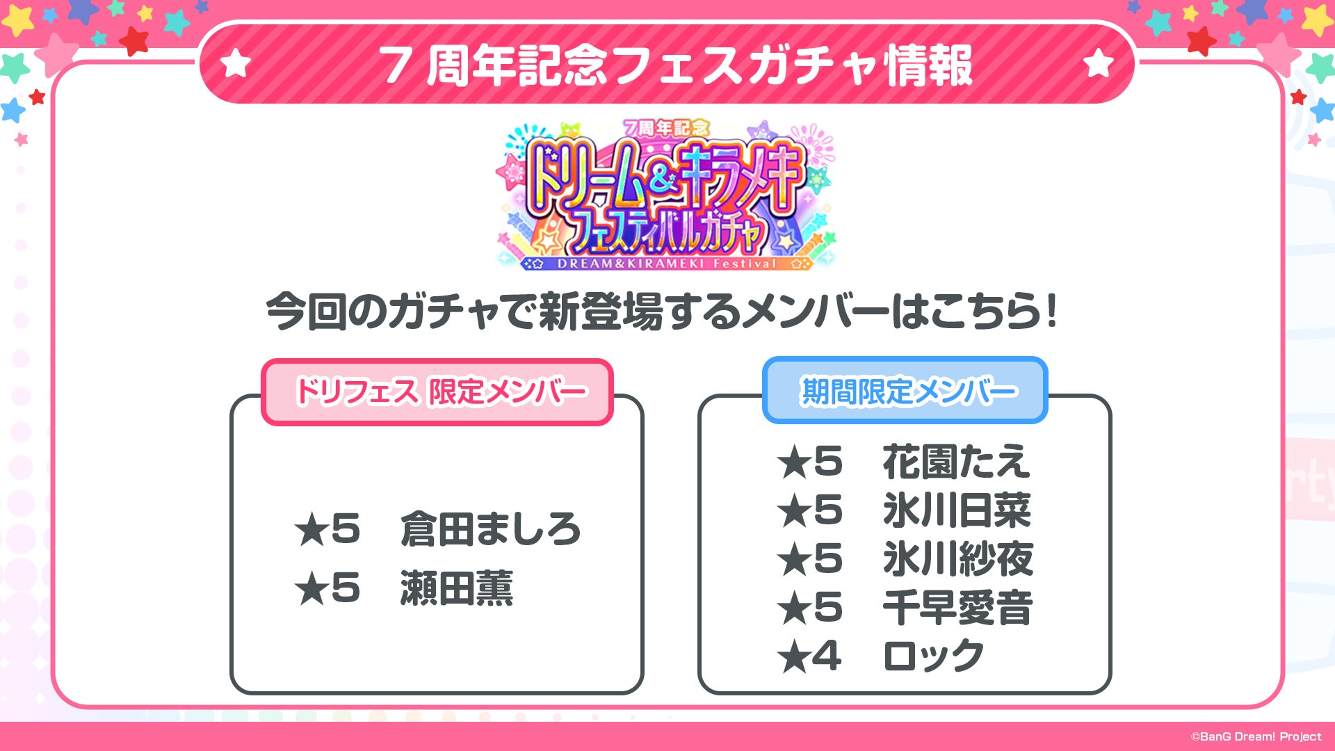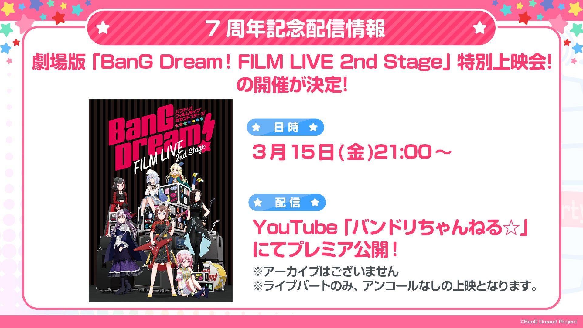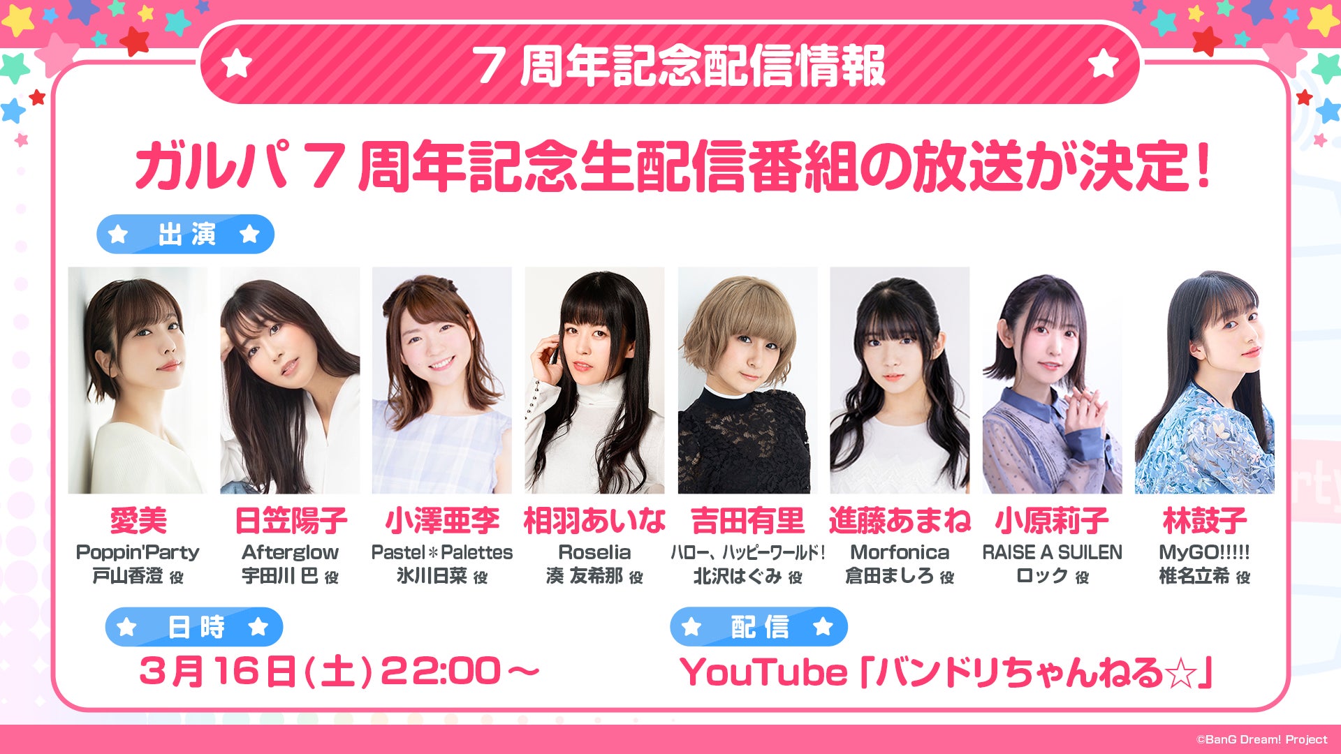 さらに、ガルパ杯の最新情報や劇場版の特別上映会、ガルパ7周年記念特番の配信も決定しています。