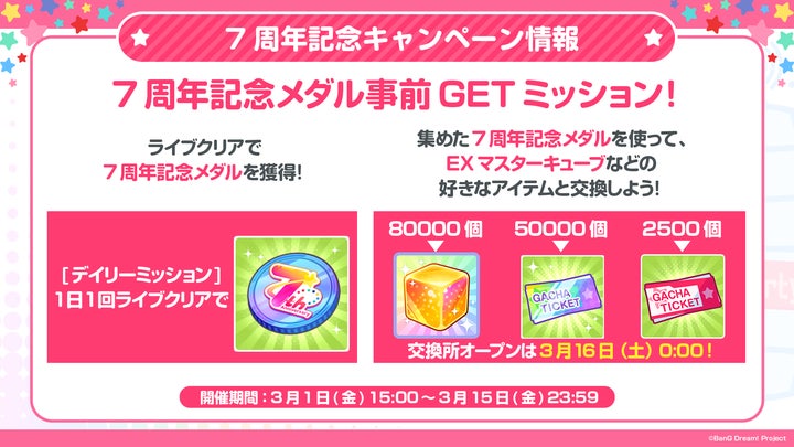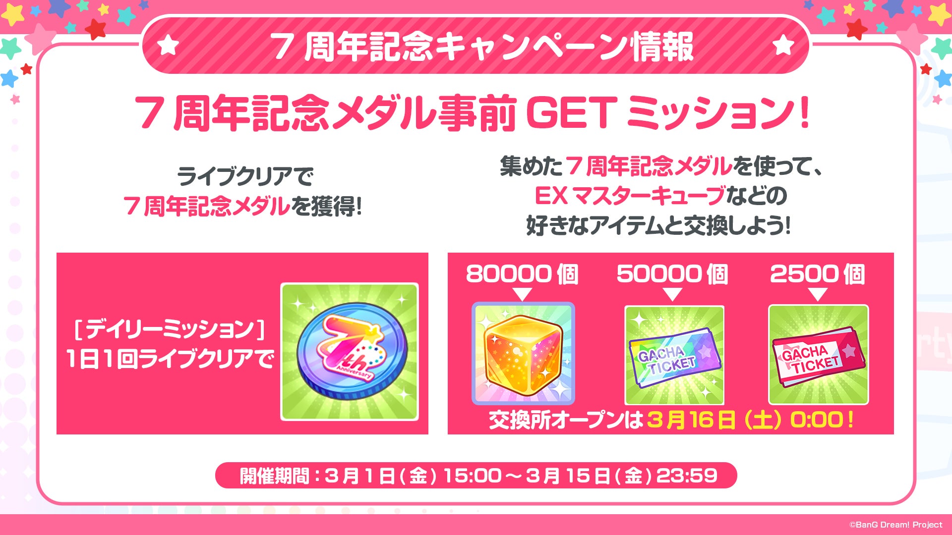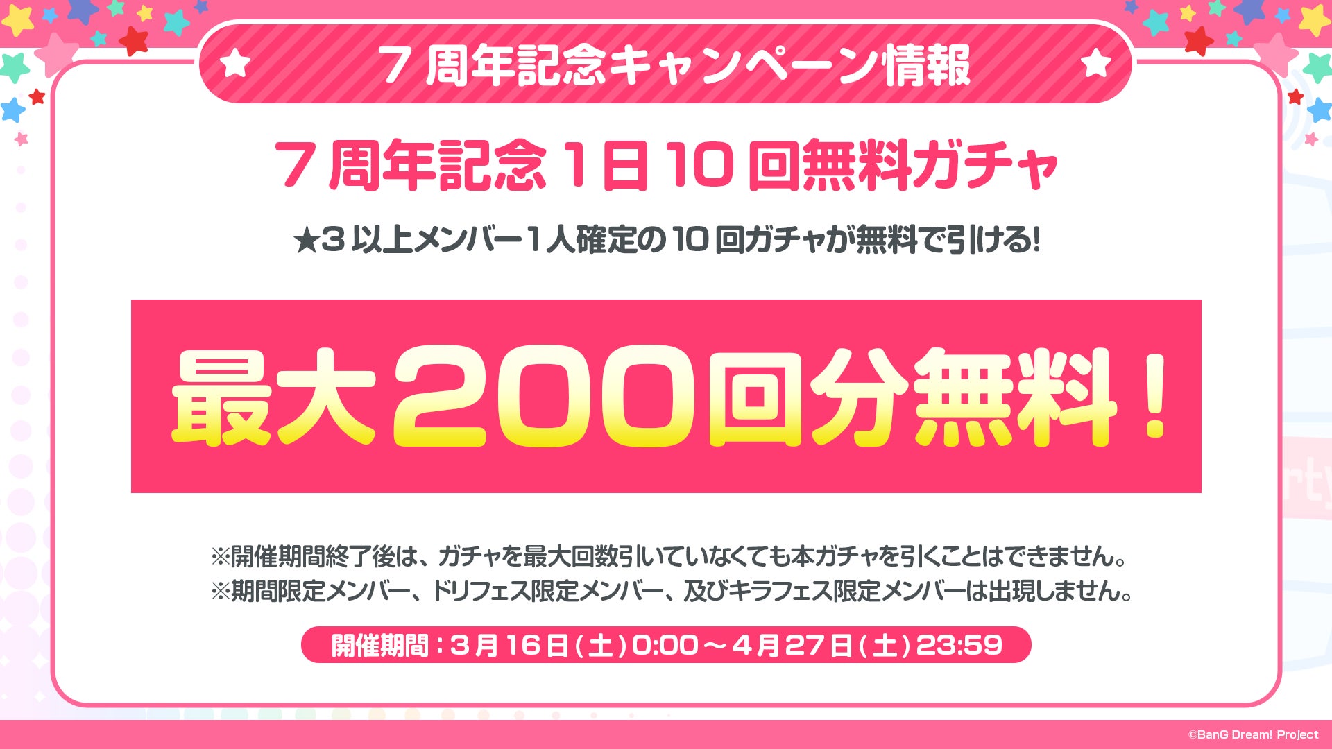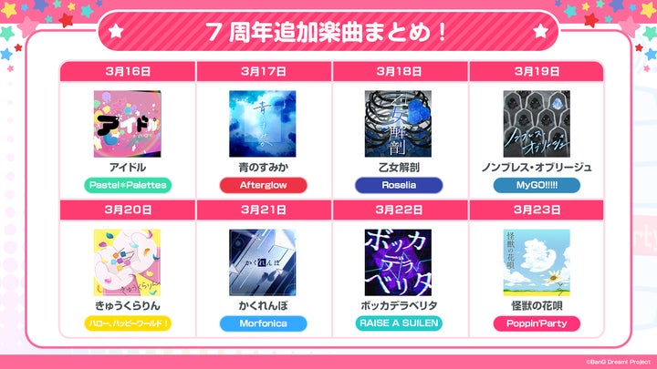 さらに、ガルパ杯の最新情報や劇場版の特別上映会、ガルパ7周年記念特番の配信も決定しています。