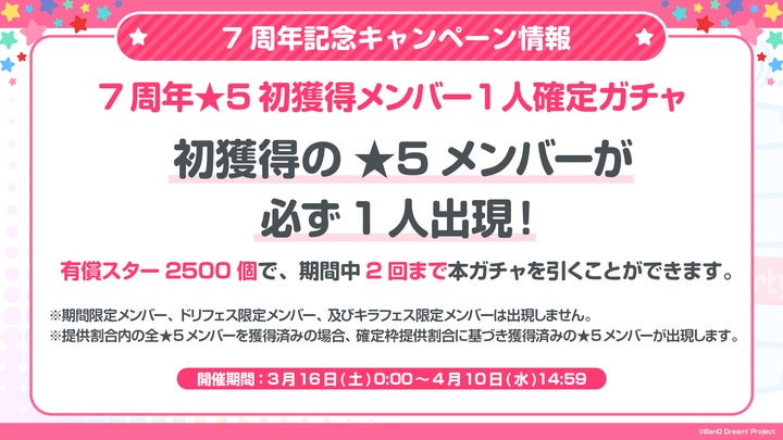 6. 7周年★5初獲得メンバー1人確定ガチャが開催中。