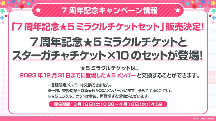 7. 7周年記念★5ミラクルチケットセットが販売中。