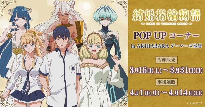 2024年3月16日から、AKIHABARAゲーマーズ本店とオンラインショップでTVアニメ「結婚指輪物語」のPOP UPコーナーが開催されます。