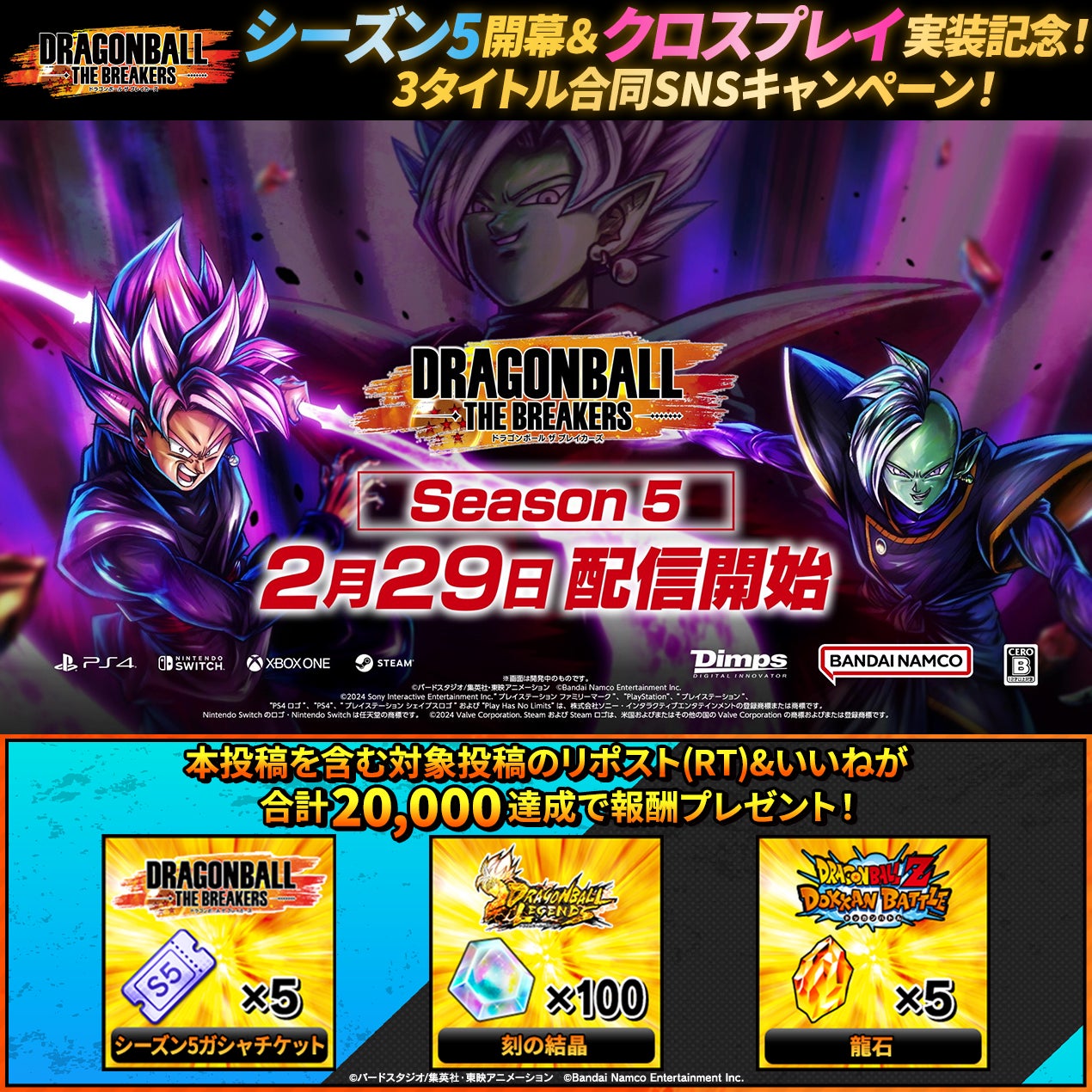 バンダイナムコエンターテインメントが好評発売中の「ドラゴンボール ザ ブレイカーズ」のシーズン5が2月29日よりスタートしました。