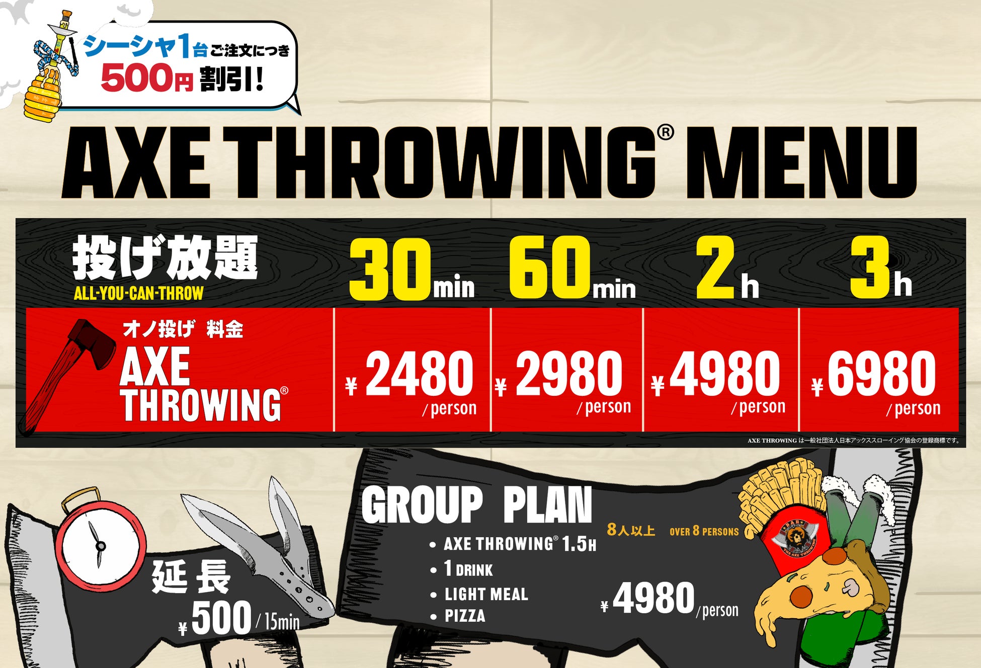 BREAK ROOM(物壊し)とAXE THROWING®︎(斧投げ)とのセット利用はもちろんですが、シーシャのみでの利用も可能です。