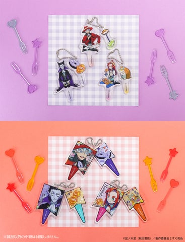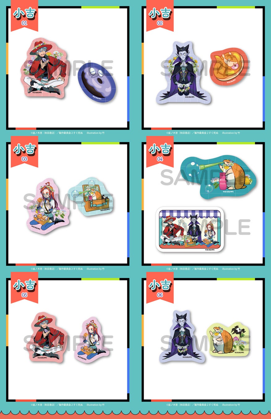 ラウンドマットやジオラマアクリルスタンド、ピック風アクリルチャーム、ランチョンマット風シート、ステッカーセットなどがラインナップ。