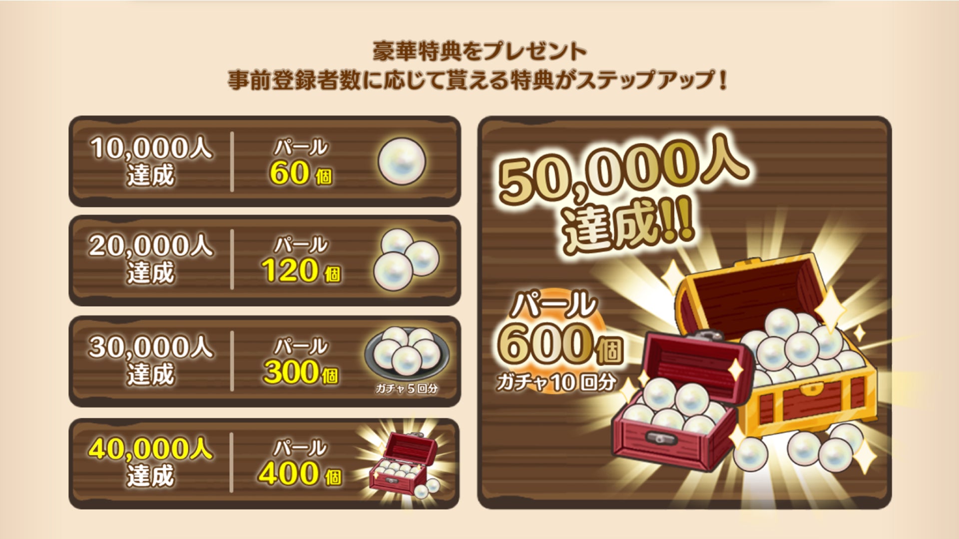 事前登録者数に応じてガチャが引けるアイテムがプレゼントされます。