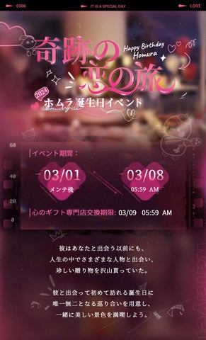 - 3月1日よりホムラ誕生日イベント「奇跡の恋の旅」開催