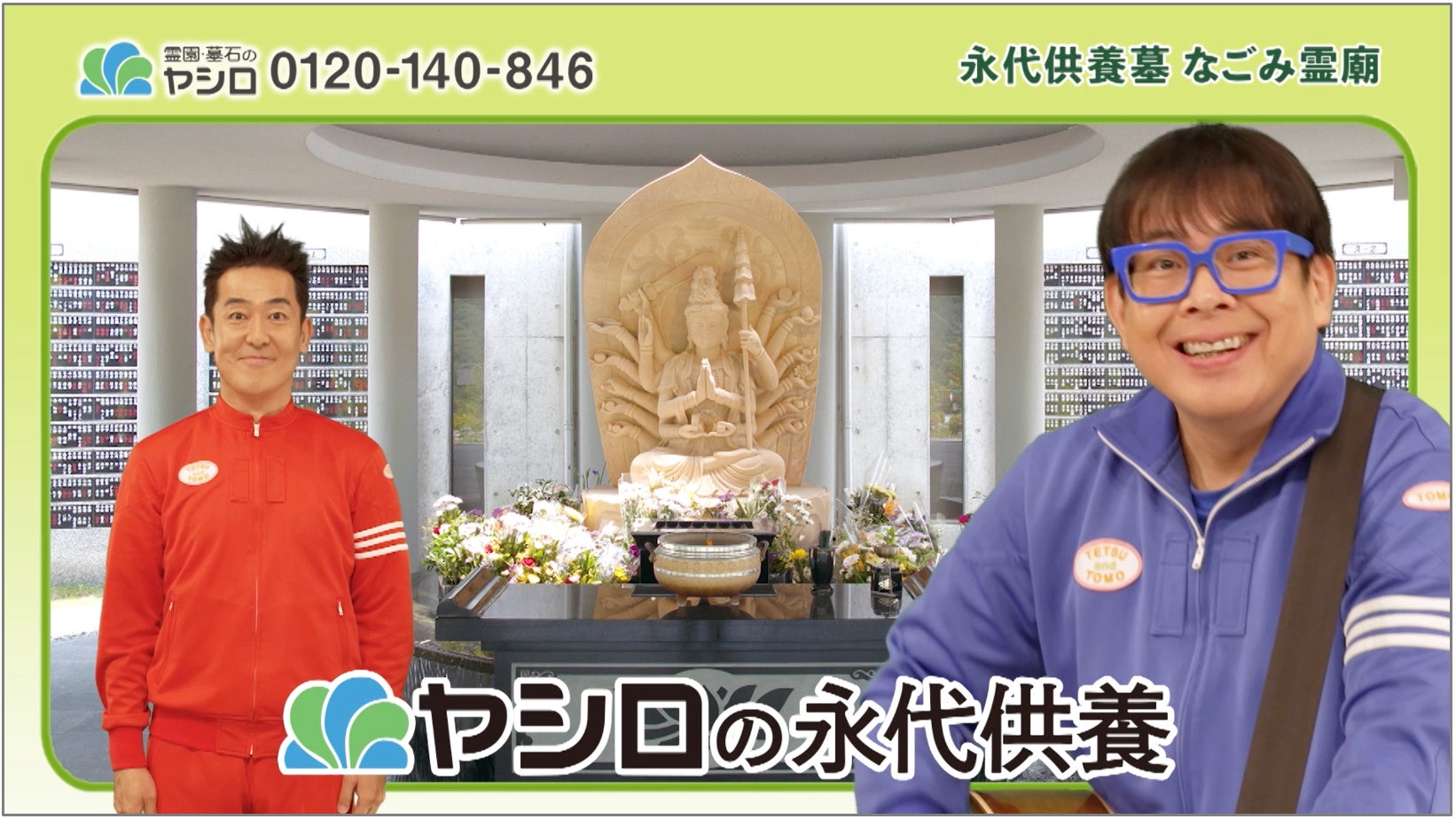 「テツandトモさん」は、お笑いと歌のステージを展開するコンビで、CM出演を通じて「霊園・墓石のヤシロ」のPRアンバサダーを務めています。