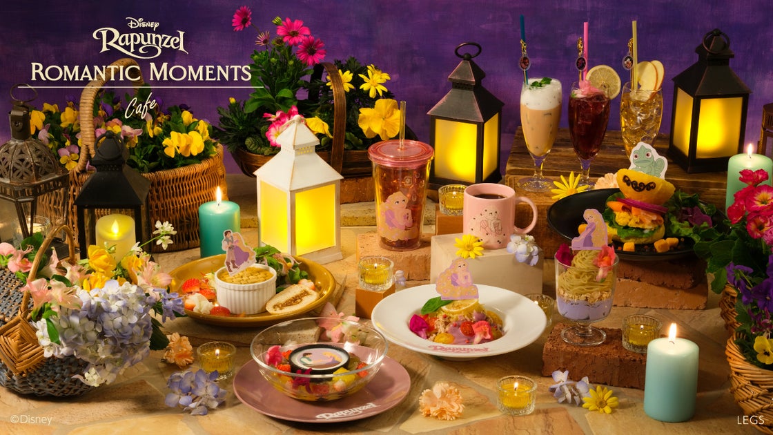 ディズニー映画『塔の上のラプンツェル』をテーマにしたカフェでは、ロマンティックなメニューやグッズが楽しめます。