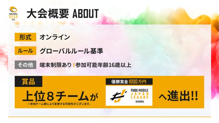 - PUBG MOBILE OPEN TOURNAMENT 2024、PUBG MOBILE JAPAN LEAGUE SEASON4、PMOT、PMJL