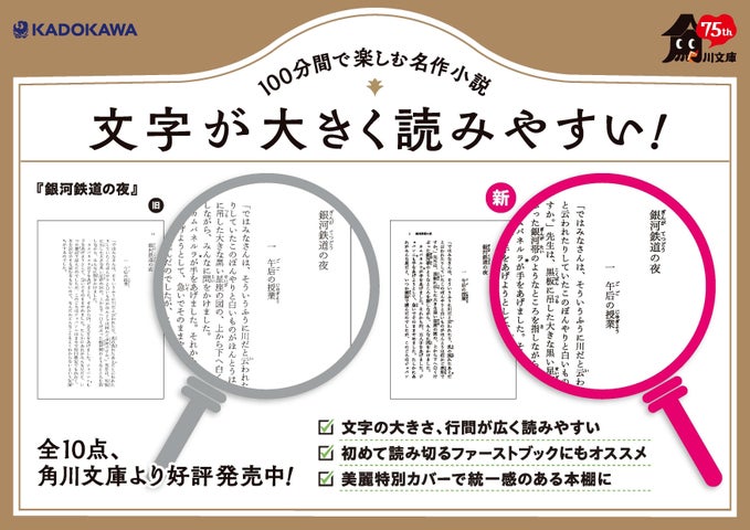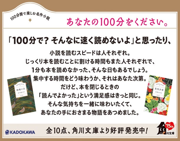- 角川文庫が新シリーズ「100分間で楽しむ名作小説」を企画