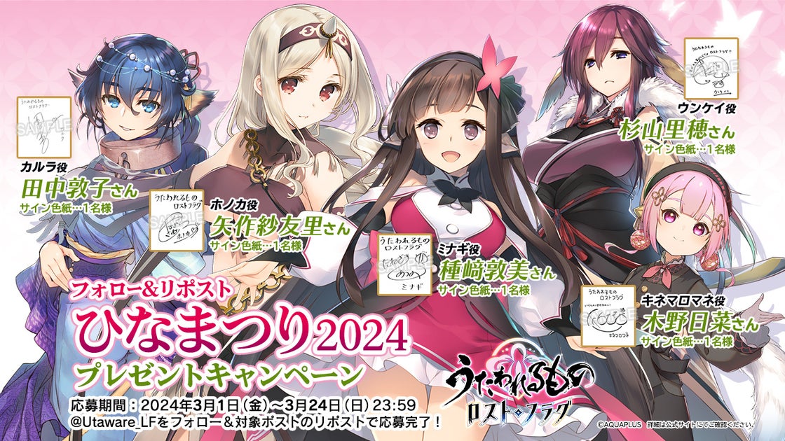 - 『うたわれるもの ロストフラグ』では2024年3月1日より第11章前半を配信開始、期間限定キャラクターや灯幻鏡が登場するガチャも開催
