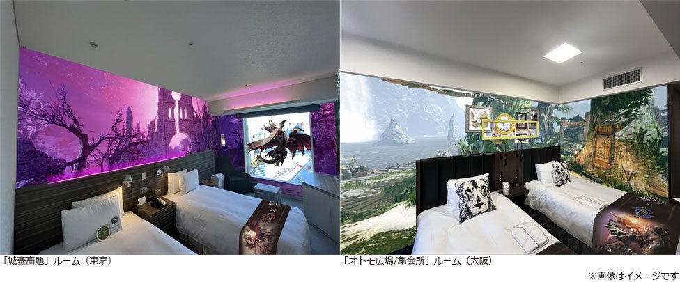 客室には、ゲームの世界観を演出した装飾が施され、ホテル館内にはフォトスポットやARマーカーが設置され、スマートフォンで読み込むとモンスターが出現するなど、ファンが楽しめる仕掛けが多数用意される。