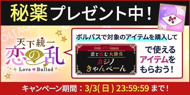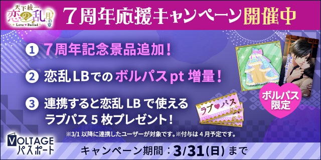株式会社ボルテージは、恋愛ゲーム「天下統一恋の乱 Love Ballad ~月の章~」が3月21日に配信7周年を迎えます。
