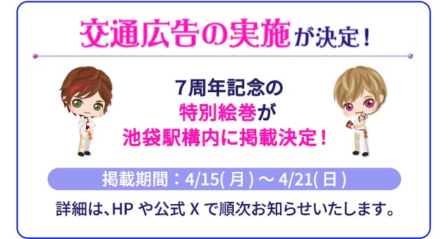 さらに、7周年記念の交通広告も池袋駅で展示されます。