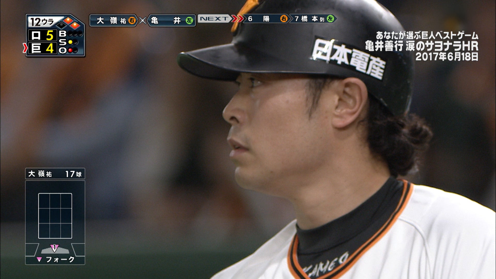 - 2017年6月18日の対千葉ロッテ戦で亀井善行のサヨナラホームラン特集